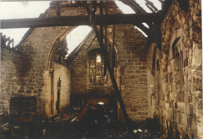 Our golden jubilee was in 1978, when a splendid service was attended by the Bishop of the Diocese, the Rt. Rev. Kenneth Skelton. But the joy so evident at that time was turned to sadness when, on the afternoon of December 27th 1979, All Saints’ was burned down. All that was left was the choir vestry and the four walls.
